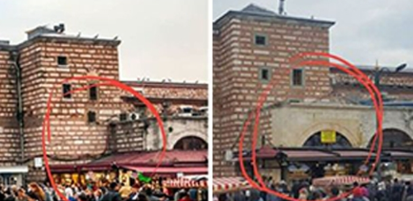 354 sene önce Hassa Başmimarı Kâzım Ağa tarafından yapılan Mısır Çarşısı’nın Yemişçiler tarafına restorasyonda eklenen dükkân tartışılıyor. Vakıflar Genel Müdürü eklenen dükkan için “Eskiden var olan fakat yıkılan kısmı restorasyonda ekledik. Aslına uygun olmayan bir kısmı eklememiz mümkün değil” iddiasını öne sürdü.